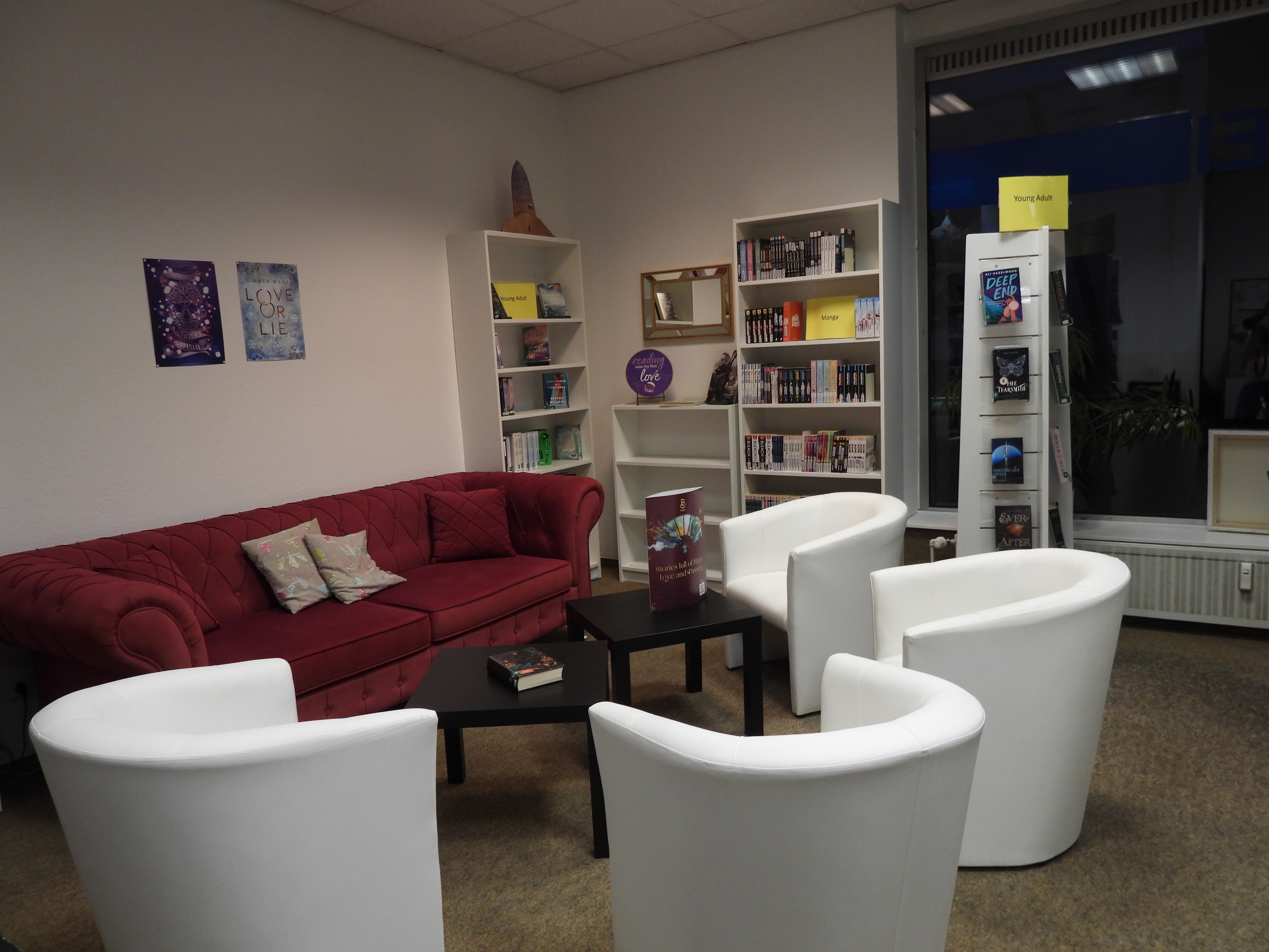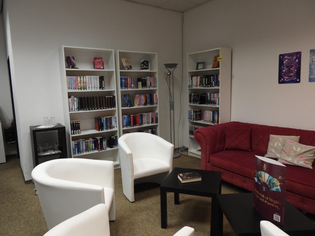 Dank der Fördergelder der „nebenan.de Stiftung GmbH“ konnten wir uns der Planung einer Young- Adult- Ecke widmen. Nachdem die ehemalige Zeitschriften-Ecke aufgelöst, die Wände neu gestrichen und alle nötigen Möbel gekauft und aufgebaut wurden, fehlt jetzt nur noch die Wanddekoration. Ziel dieser Ecke ist es, dass unsere Leser generationsübergreifend und über alle weiteren Grenzen hinweg ins Gespräch kommen; ganz egal,ob dies mittels Bücher geschieht, bei Veranstaltungen oder bei einem Smalltalk während der Öffnungszeiten. Weitere Aktionen in der Ecke sind in Planung.