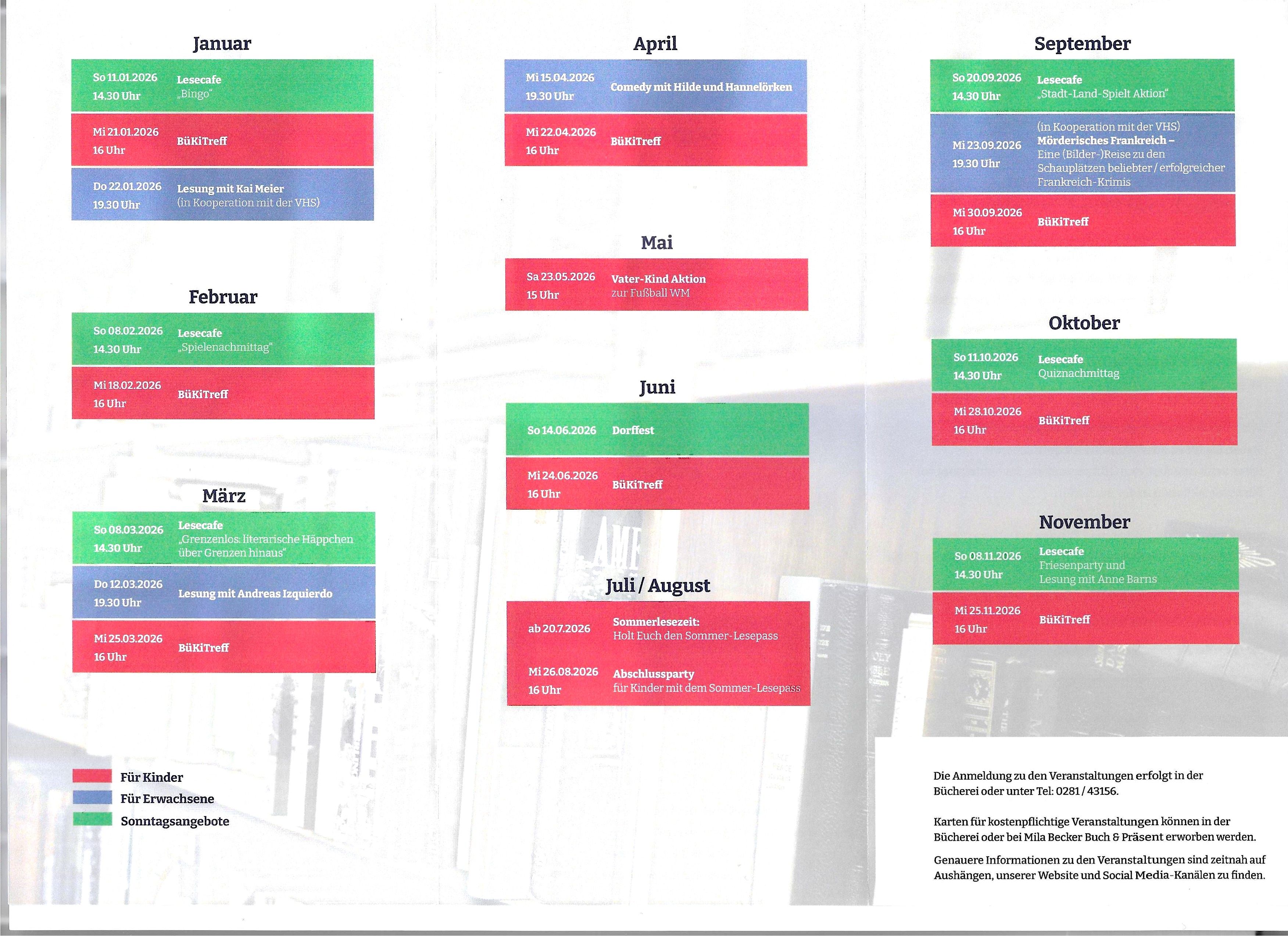 Wegen der am gleichen Tag stattfindenden Autorenlesung von Kai Meier bleibt die Bücherei am Nachmittag geschlossen.
